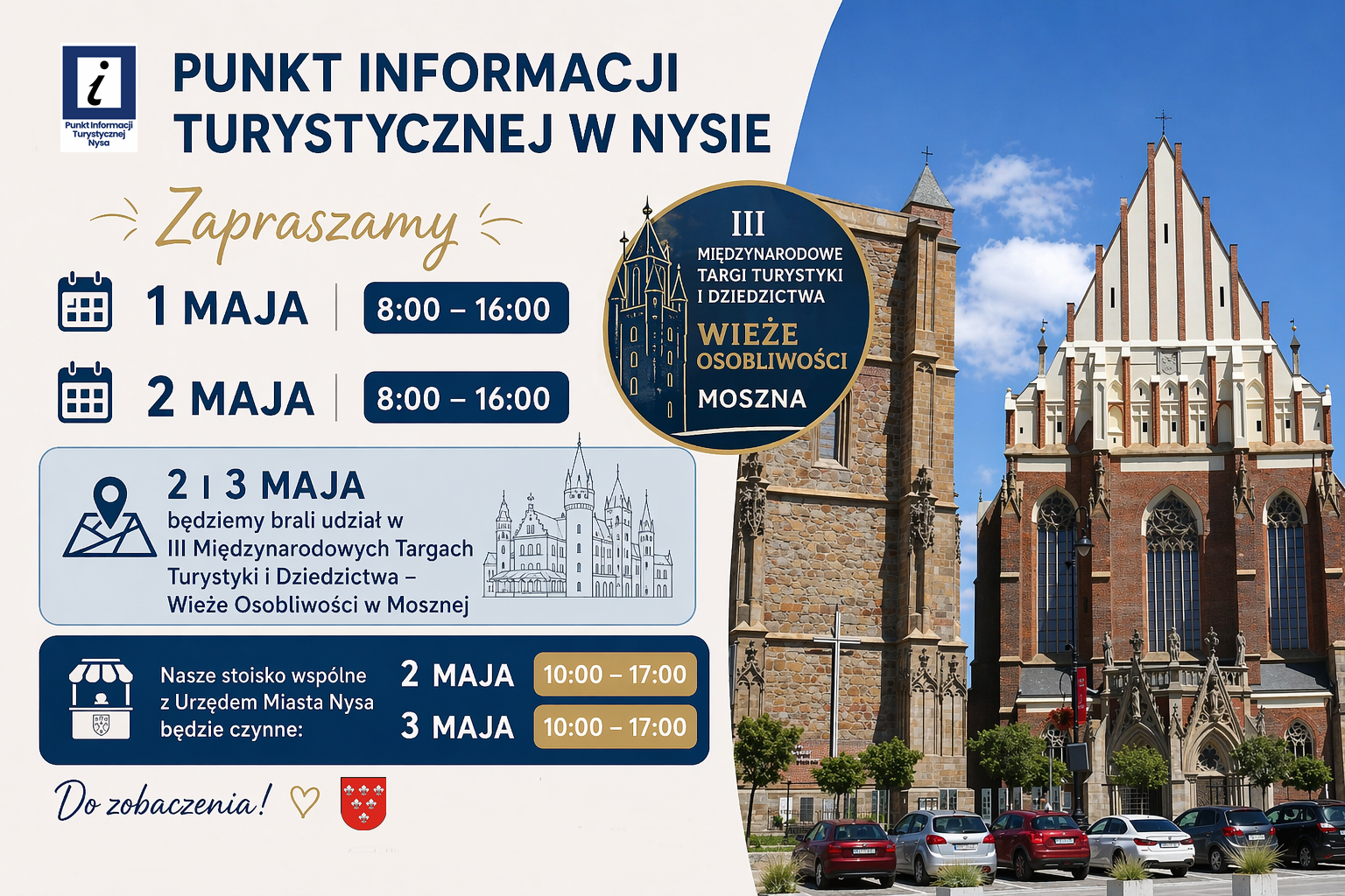 W weekend majowy zapraszamy do stacjonarnego Puntu Informacji Turystycznej w Nysie (ul. Racławicka 1):